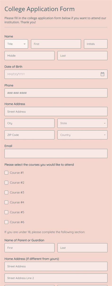 This college application form template gives focus to colleges who wish to have a web form for receiving college applications online. Easily collect details like gpas, academic accomplishments,. Clone and modify this form to gather essential details. Instantly download college application form template, sample & example in microsoft word (doc), google docs format.