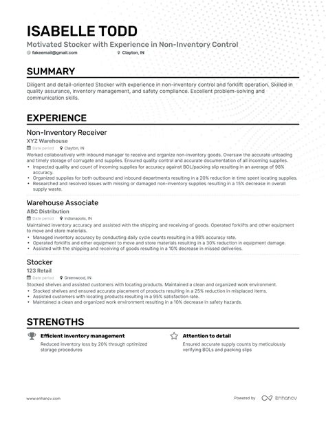 Stocker Resume Samples - Learn how to write a stocker resume step by step. Contact information, resume summary, work experience, skills and education. Stockers play a critical role in maintaining inventory and ensuring that products are well. 7 stocker resume examples & guide for 2024. The best stocker resume examples with headline, objective statement, description and skills.